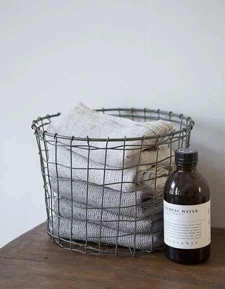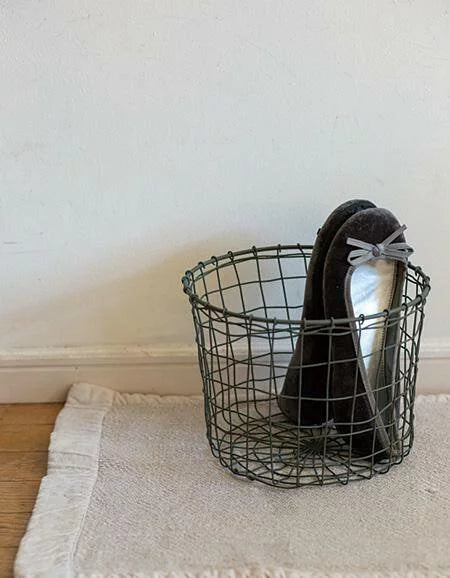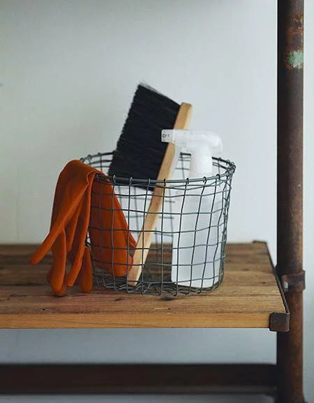 由鐵製成一個獨特風格的收納籃放在空間中,除了收納且美觀