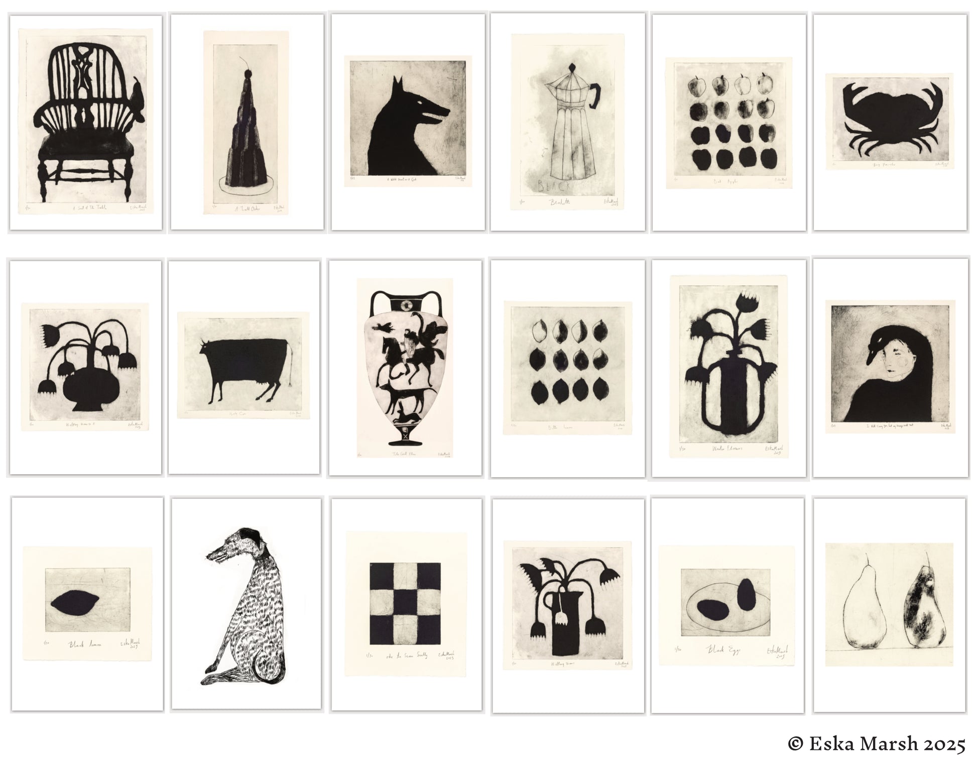 收錄了 Eska Marsh 的最新版畫系列,裝在透明襯紙中。