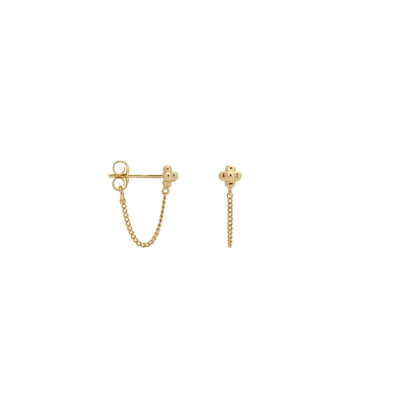 Single Blossom Chain Earrings 使用 925 純銀加上1微米層14K金手工製作而成
