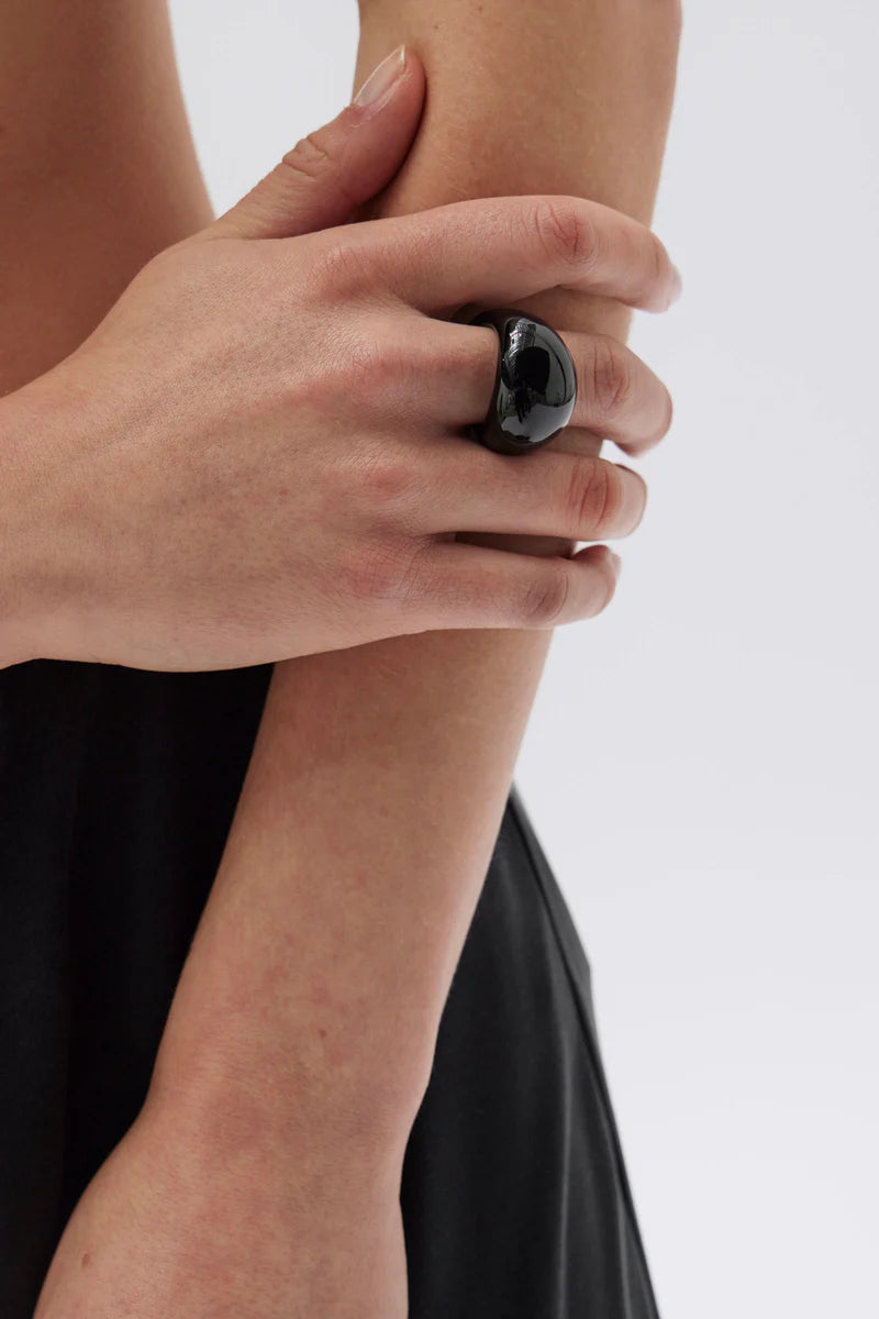 VENETIAN GLASS BUBBLE RING IN OPAQUE BLACK.